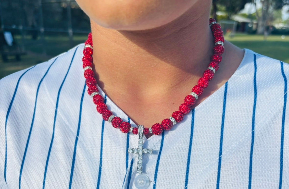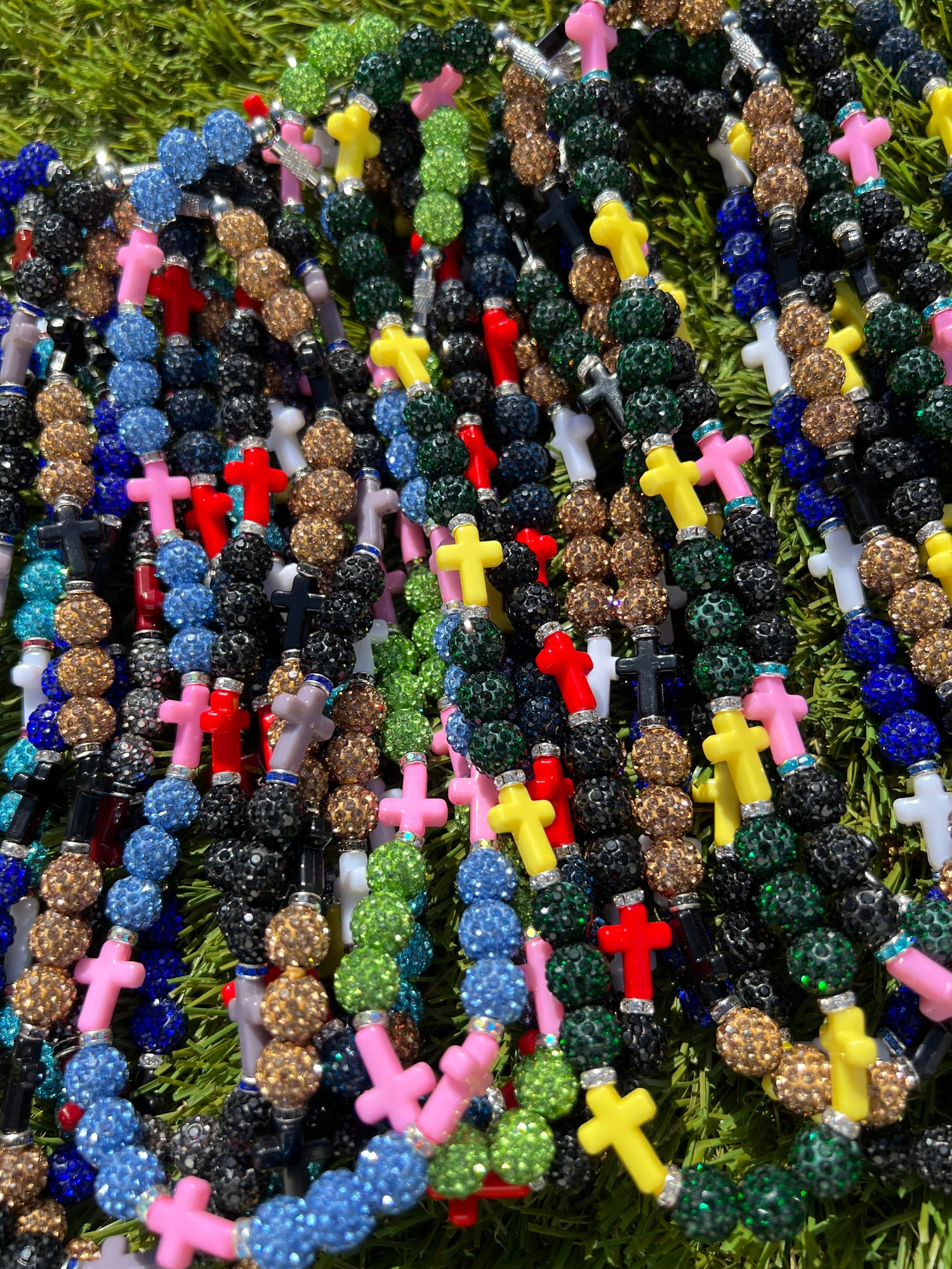 Navy Blue & White w/ Pink Spacers Natty Necklace
