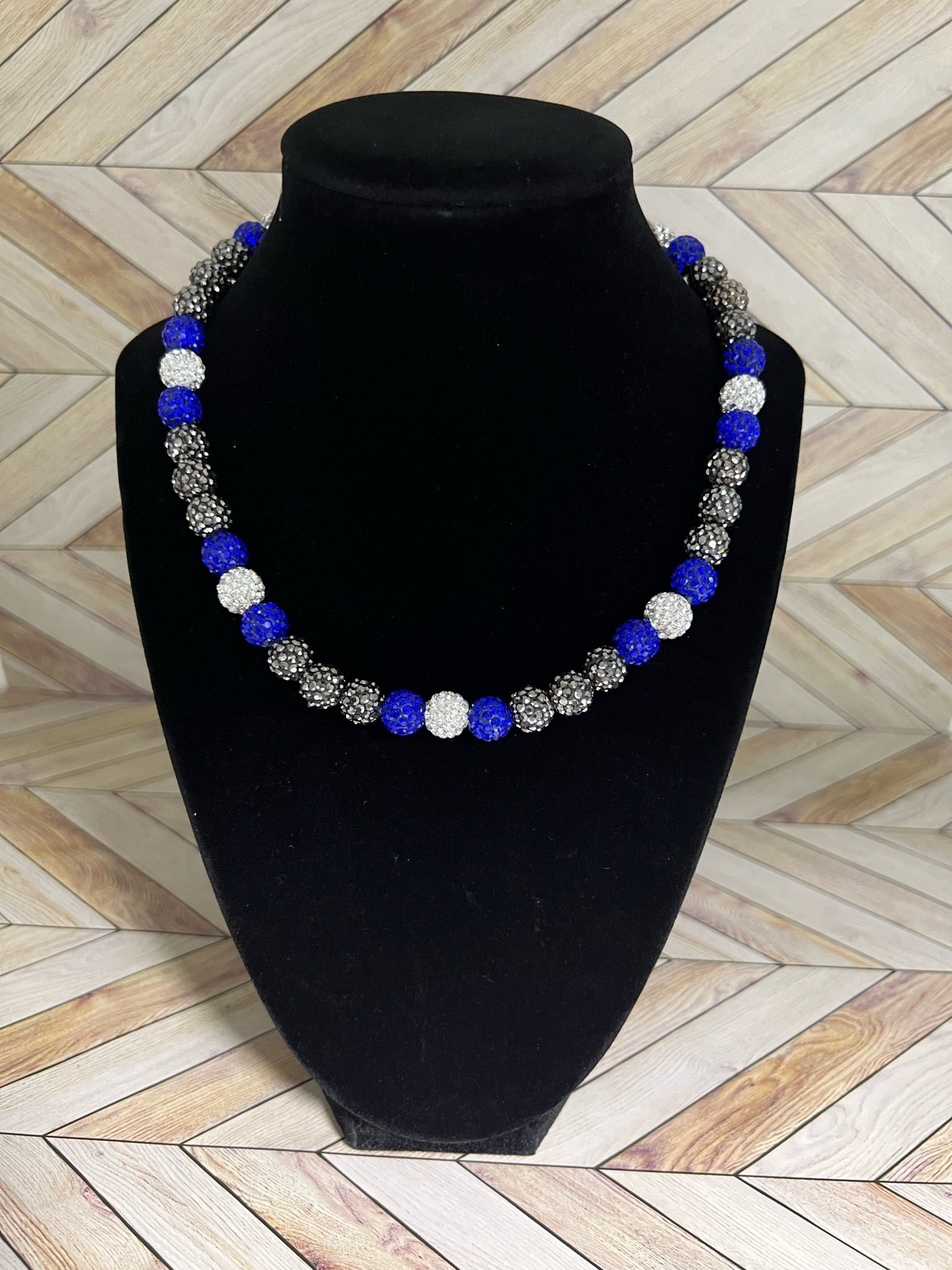 Royal Blue, Grey & White Necklace